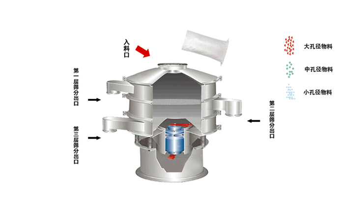 3. 篩分過程:在振動的作用下,物料會不斷跳躍、滾動和移動,同時通過篩網的篩孔,較大顆粒的物料會被擋在篩網上方,而較小顆粒的物料則通過篩孔落入下方的出料口。