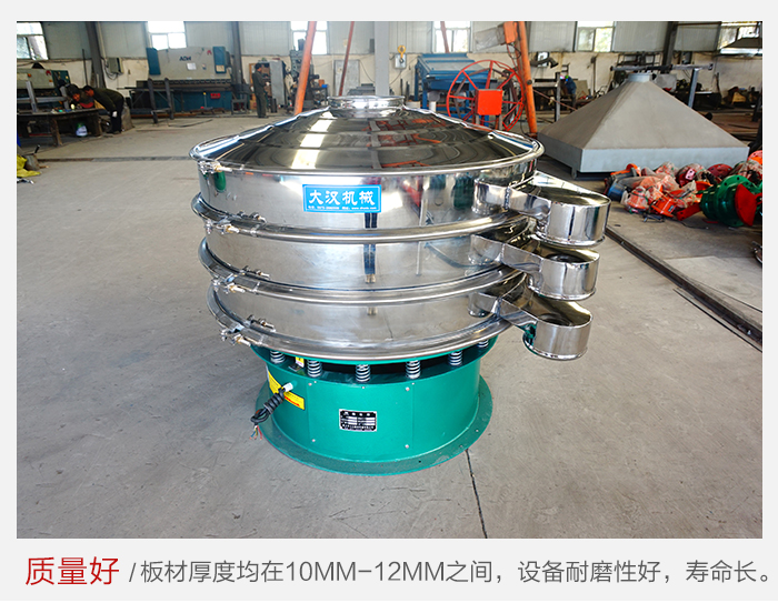 大漢廠家生產(chǎn)的雙層旋振篩采用優(yōu)質(zhì)碳鋼或不銹鋼材質(zhì),板材厚度均在10mm-12mm之間,設(shè)備耐磨性好,使用過(guò)程中不會(huì)因設(shè)備質(zhì)量問題而造成設(shè)備停機(jī)問題,可以在很大程度上降低設(shè)備的維護(hù)費(fèi)用。